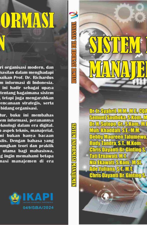 Rp0- Penulis: 1Dr. Ir. Syahril, M.M., ME., CQAP., 2Semuel Souhoka, S.Kom., M.M., 3Dr. H. Sutopo, Gr., S.Kom., M.M., M.O.S., 4Muh. Khaddafi, S.E., M.M., 5Debby Maureen Talumewo, S.T., M.Kom., 6Rudy Tandra, S.T., M.Kom., 7Chris Dayanti Br. Ginting S, S.E., M.Si., CTT., 8Tati Ernawati, M.T., 9Nia Ekawati, S.Kom., M.Si., 10Ade Yuliana, S.T., M.T., 11Chris Dayanti Br. Ginting S, S.E., M.Si., CTT.